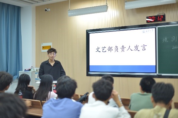 文体协会指导老师史杨季发表讲话,他强调文体协会所有成员首先要明确身份认知,谦虚好学,求真务实,树立榜样意识。做到头脑清晰,心思细腻,敢想敢干,工作时注意方式方法,不断提升工作效率。重视集体利益,强化部门间协同配合,相互团结,在文体协会中有不断成长、不断进步。