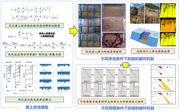 黄土高原是我国地质灾害发育最为严重的地区之一。全球变暖加剧了气候的不稳定性,导致极端天气事件愈加频发,黄土地质灾害急剧增多。极端天气与重大工程耦合作用下,黄土地质灾害的孕灾规律和成灾机制剧变,现有理论和技术方法难以满足防灾减灾需求。针对现有研究不足和迫切需求,团队在国家自然科学基金等项目的支持下,在黄土微观物理机制、细观力学理论、宏观灾变机制及防控方面开展研究工作,为区内重大工程防灾减灾提供科学依据。