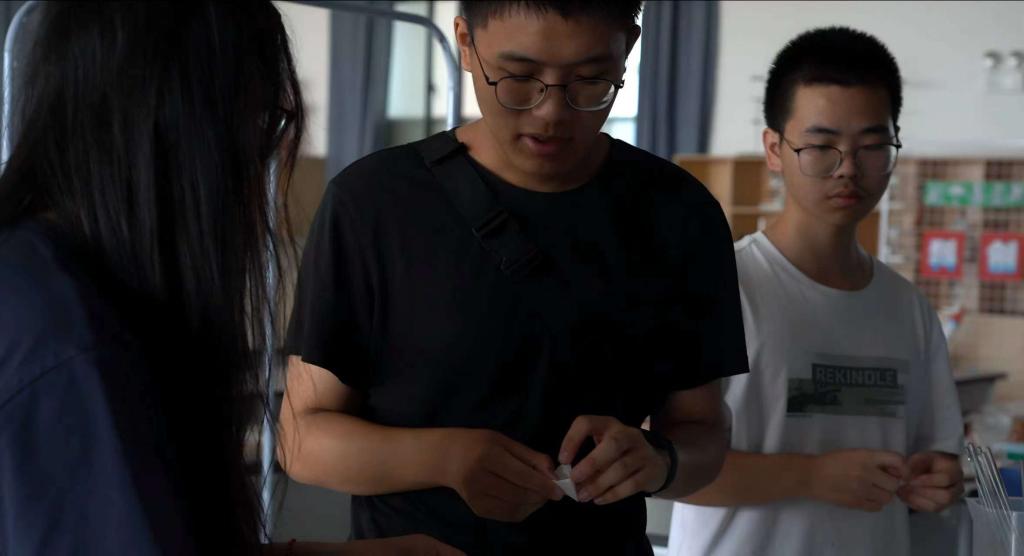 另一组成员由二年级学长刘岩带领,对于明后两天开展的四组实验进行实验前装置的清理、摆放,同时熟悉实验装置。在确保实验安全性的前提下,尽可能的为北辰小学的同学献上一组精彩纷呈的科普小实验。