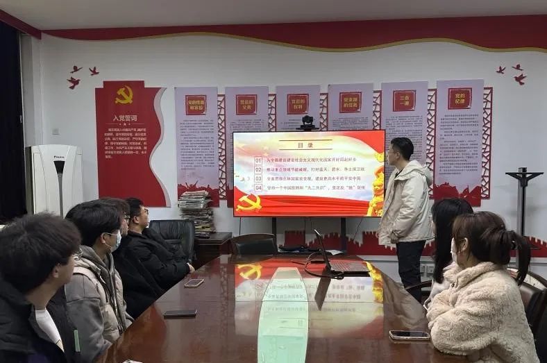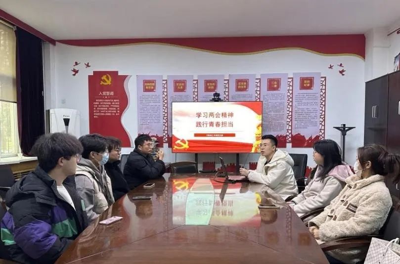 楼107会议室共同认真收看2024年全国两会开幕盛况,并于观看后开展了以“学习两会精神,践行青春担当”为主题的党支部集体学习会议,会议由支部书记温林浩主持,全体党员参与。