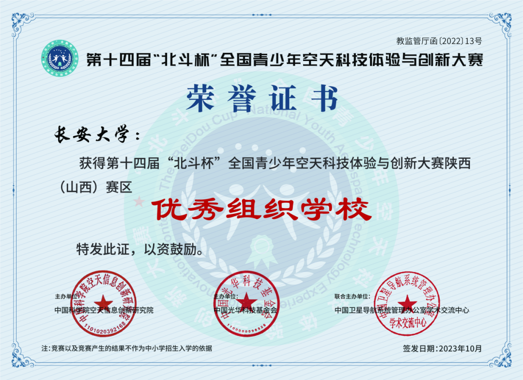 选拔赛、创业先锋挑战赛,迎新晚会等学院特色活动。2023年“北斗杯”全国总决赛中获得全国一等奖1项(第一赛道本科组全国唯一)、全国二等奖3项、全国三等奖2项。在“北斗杯”陕西(含山西)赛区选拔赛中获奖83项,其中获得省级一等奖9项、二等奖10项、三等奖7项和省级优秀奖多项。