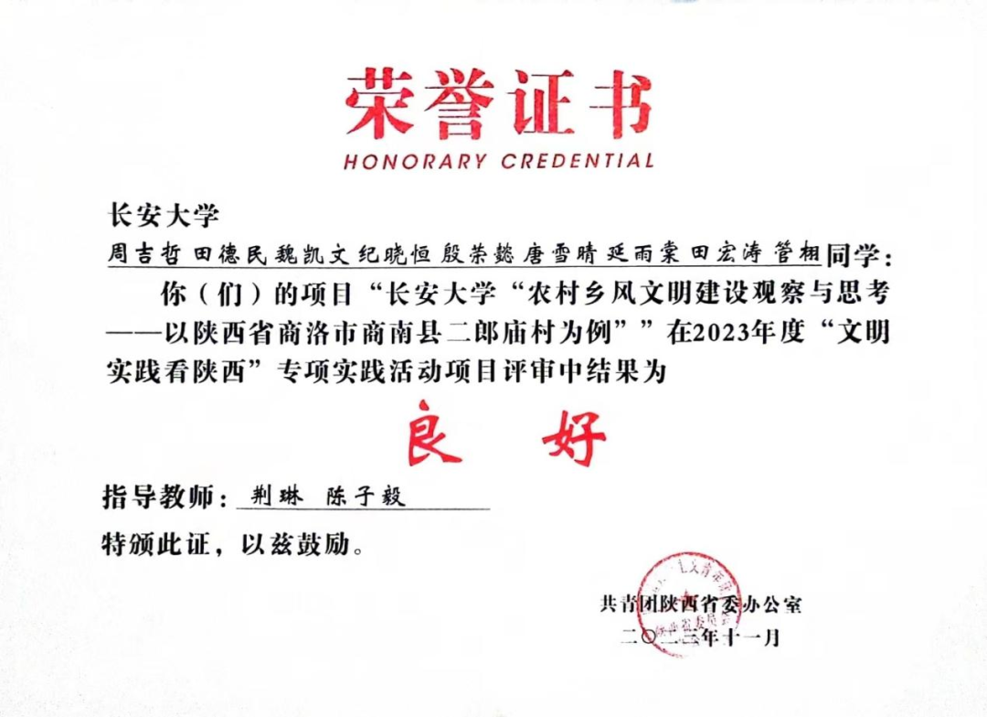 此外,2022-2023学年,1位教师受共青团陕西省委授予青年科技奖,3位教师成功申报2023年秦岭生态科学考察行动选题。