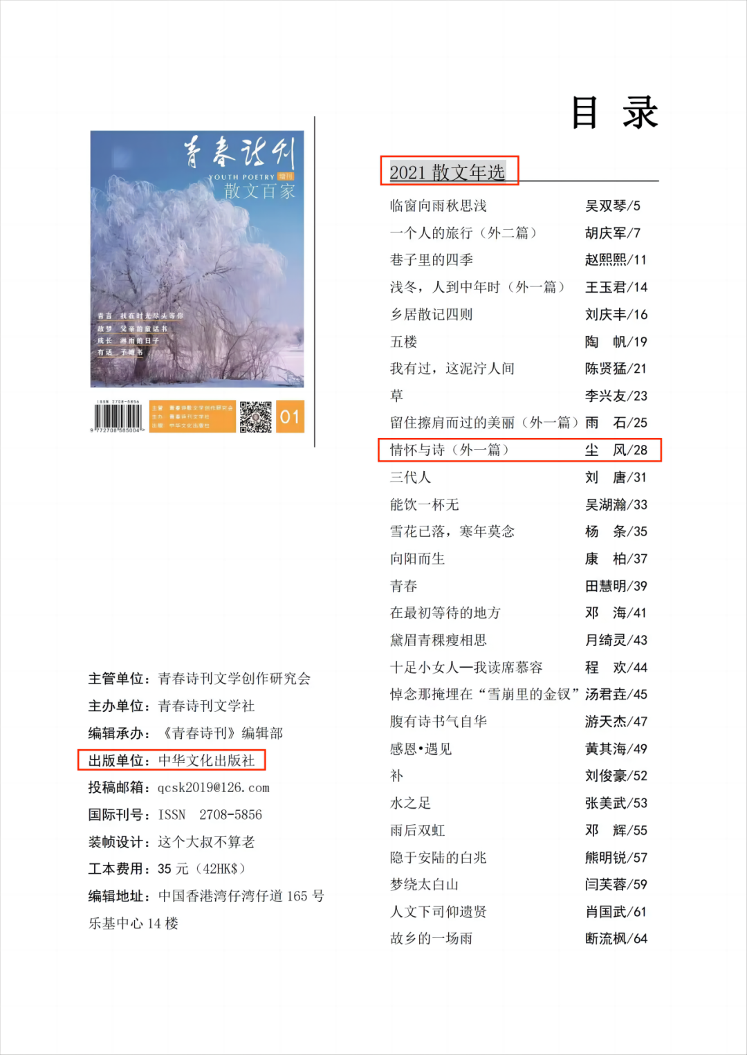 2021年6月,中国最优秀的公益性诗歌丛刊之一《青春诗刊》面向全国高校大学生发出征稿启事,他了解到后,心中的第一念头就是要把“长安”“文学”“青年作家”等诸多关键词带到更高更广的平台上去。于是,他潜心创作,不断打磨润色自己的文字。经过层层选拔,他以优秀大学生诗人身份入选其“大学生诗潮”专栏,同时,以91麻豆