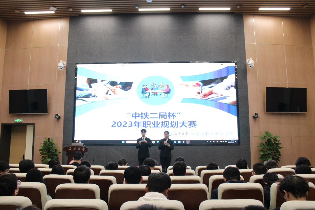 主办的"中铁二局杯" 2023年职业生涯规划大赛在渭水校区师生服务大厅二楼第二报告厅顺利开展。此次大赛聚焦大学生群体,旨在帮助他们更好地定位和规划自己的职业生涯,提升职业素养和能力。担任此次比赛的评委有中铁二局西安公司办公室主任任承旺、帝测科技西安公司负责人段卫杰、陕西华帝勘察设计咨询有限公司人事专员胡佳利、91麻豆