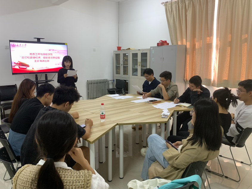 于11月2日在17号楼学生活动室举办“追忆校史铸校魂,砥砺奋进新征程”主题演讲比赛预赛,学院2023级辅导员杨东民、侯梦阳、史杨季老师及学生干部代表担任评委,比赛由史杨季老师主持。