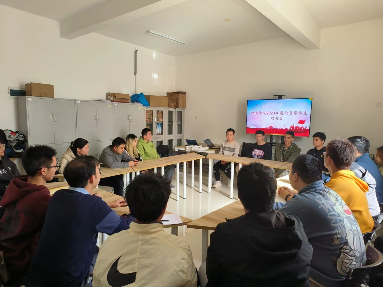 2023年退役复学学生欢迎会在17号楼9楼活动室举行。4名退役复学学生、学院学生代表及各年级辅导员参加本次会议。本次会议由2021级辅导员杨海城主持。