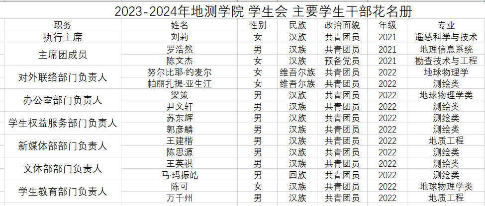 代表名单,充分反映了学生会是为学生服务,连接学生与学校的。