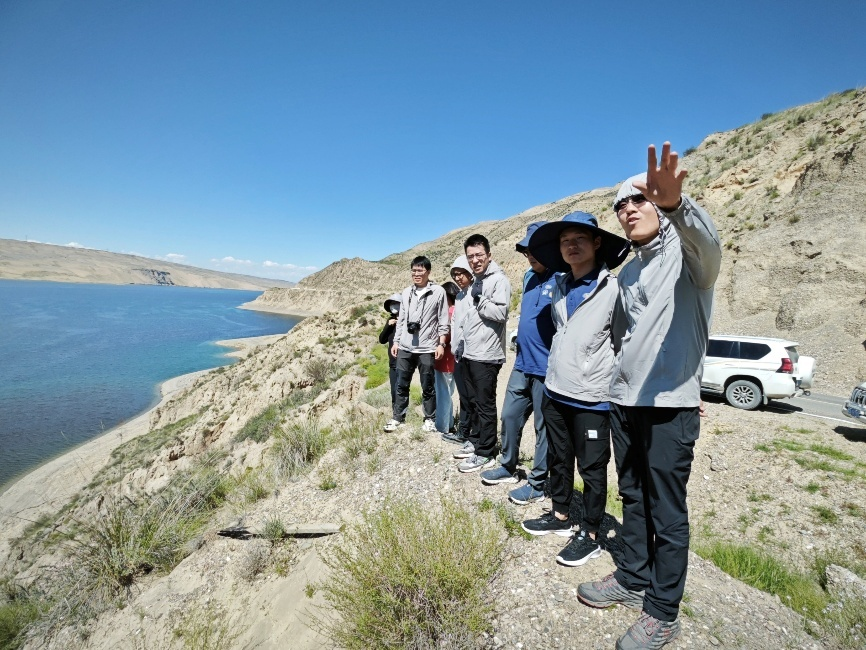 暑假社会实践队在科考队庄建琦教授的带领下从西宁出发,驱车近七个小时到达贵南县茫拉乡茫拉村的白刺滩滑坡。庄建琦教授从滑坡发生区域的岩性条件、岩体结构和水文地质条件等方面对滑坡的成因机理进行了分析和讲解,王祚鹏博士、占洁伟博士结合区域地质构造背景对滑坡形成的原因进行了补充说明。通过庄老师、占老师和王老师的讲解以及实践队员与老师们的互动讨论,实践队员对库区滑坡形成的成因机理有了更深入的认识,对课内所学的专业知识有了更深入的理解。