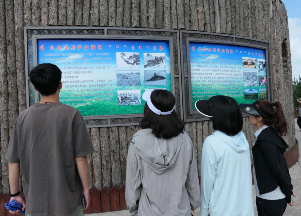 毛乌素沙地曾经风沙肆虐、寸草不生,经过鄂尔多斯人民一代又一代的治理,实现从“沙进人退”到“绿进沙退”的历史性转变,创造了大漠变绿洲、沙漠变黄金的奇迹。暑期实践队的成员们对此深感震撼,站在坡顶瞭望沙地满眼绿意,这是一代一代的治沙人怀揣着坚定的信念,战胜一切困难取得的成果。