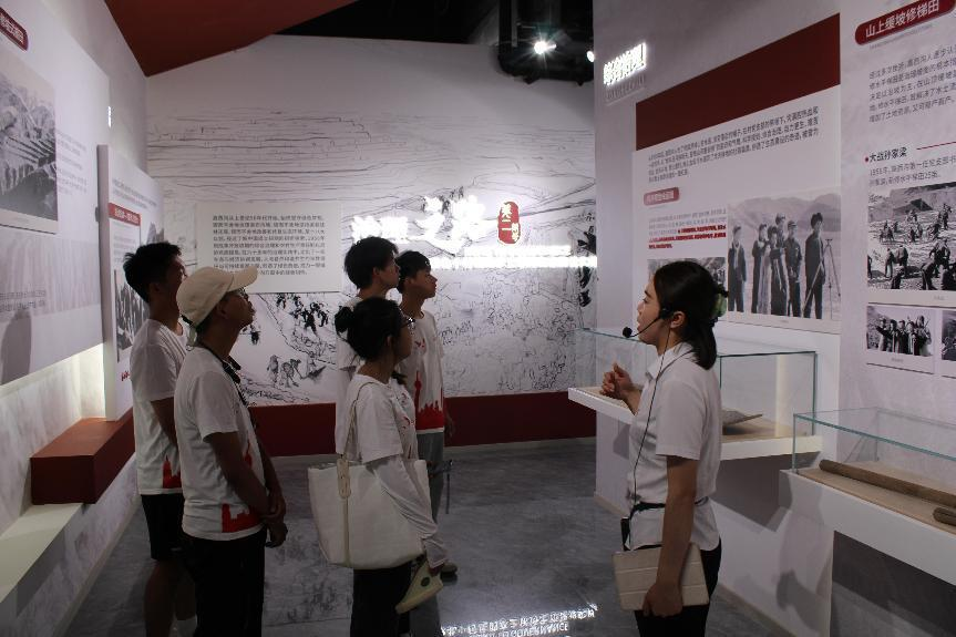 7月10日-7月13日,实践队成员与米脂团县委书记鲍雪娇汇报完工作计划与行程安排后,搭乘公交来到了“陕北小江南”--高西沟村,沿途绿意盎然,树木茂盛,全然不见昔日光秃黄土的面貌。随后,实践队成员在讲解员的带领下参观了高西沟村水保生态教育基地,了解了高西沟村生态治理的艰苦历程及伟大成果,见识了高西沟村四任领导班子三代人“敢叫日月还新天,誓把山河重安排”的胆识与气魄,学习了“坚持不懈、与时俱进、协调发展”的新时代高西沟精神,对高西沟村为什么能实现华丽转变有了更深的感悟。