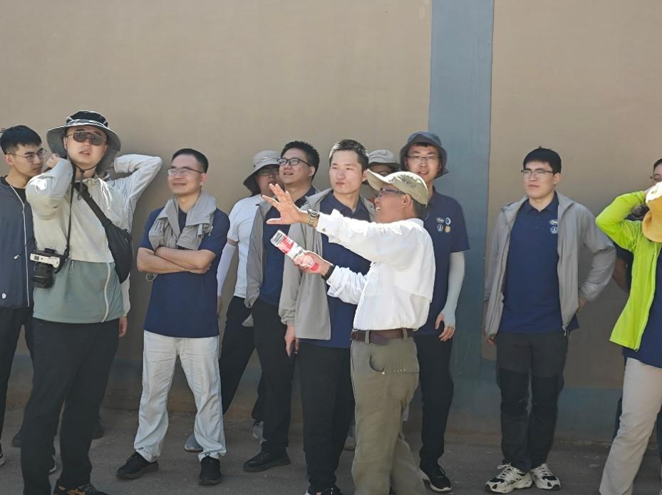 实践队在实践考察途中,恰逢参与援建该村的中国地质大学张绪教教授,他为科考队员们热情讲解文化村的概况,并引导队员们参观和调研阿河滩地质文化村。