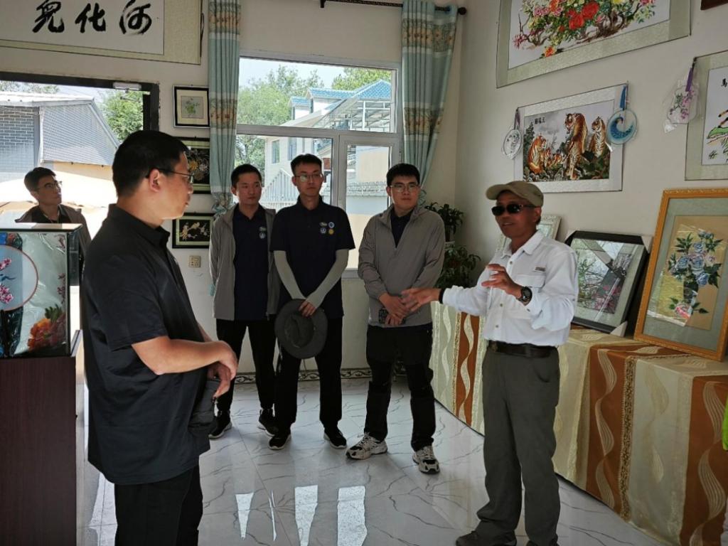 从村口往西走,暑期社会实践队员们首先参观了撒拉族女儿秀体验,同时与撒拉族女儿秀体验馆韩馆长进行了广泛的交流,韩馆长向队员们简要介绍了撒拉族刺绣的历史,介绍一群勤劳手巧的绣娘是如何通过青绣改善生活、脱贫致富,如何通过青绣走出大山、接触世界。通过交流介绍,队员切实感受到地质文化村建设从乡村文化方面赋能乡村振兴,以文化振兴为乡村发展振兴提供内生动力。