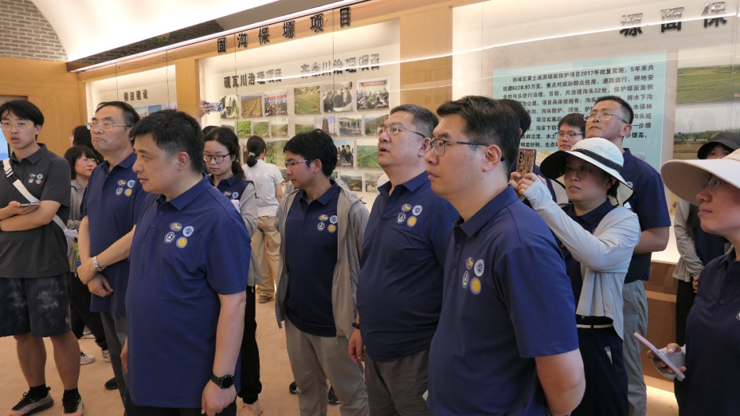 为进一步了解固沟保塬治理措施,感受其带来的福祉,实践队指导老师和实践队成员跟随李局长进入清水沟治理工程各个展厅参观。参观伊始,李局长详细介绍了自上世纪九十年代以来,庆阳市水保局及各企事业单位在各级政府的领导下,清水沟小流域在固沟保塬治理措施方面取得的示范性成果,并观看固沟保塬成果宣传片。