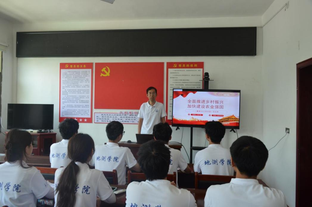 在实践结束的最后,指导老师陈子毅在二郎庙村党支部活动室以“全面推进乡村振兴,加快建设农业强国”为主题进行党课讲授,从抓紧抓好粮食和重要农产品稳产保供、加强农业基础设施建设、推动乡村产业高质量发展等九个方面对2023年中央一号文件进行解读,使实践队员们深刻体会中国共产党为扎实推进乡村发展、乡村建设、乡村治理工作,加快建设农业强国,建设宜居宜业和美乡村所做出的不懈努力。授课结束后,同学们结合本次学习主题分享心得体会,畅谈学习感悟,纷纷表示要加强自身学习,提升能力素质,把艰苦环境当成磨砺自身本领能力的机遇,在大有可为的乡村大显身手,全力以赴助力乡村振兴工作更上一层楼。