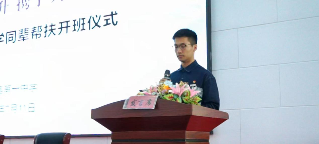 附属学校党总支书记郭自立、附属学校副校长谌亚芳、焉耆县第一中学党委书记孟彦君等领导嘉宾、同辈帮扶志愿者团队、帮扶团队成员及家长共同参加了开班仪式。仪式上,实践队志愿者代表王博表态发言道,我们将倾尽全力做好同辈教育帮扶,以期帮助焉耆学子提升学业水平、丰富学习技巧、培塑理想信念、明确人生规划,在与焉耆学子交朋友的过程中增学识、促融合,挺膺但当时代使命,携手共画民族团结进步壮美画卷。