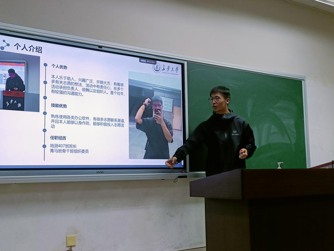 然后各位答辩同学依次上台,结合自己的答辩ppt从个人介绍、工作总结、工作展望、社团未来发展目标与计划等方面进行详细阐述。在该过程中每一位同学都总结了自己在部门工作中的收获与成长,提出了自己对部门以后管理与发展的见解,并回答了主席团成员与上一届主席团成员,部门负责人提出的问题。