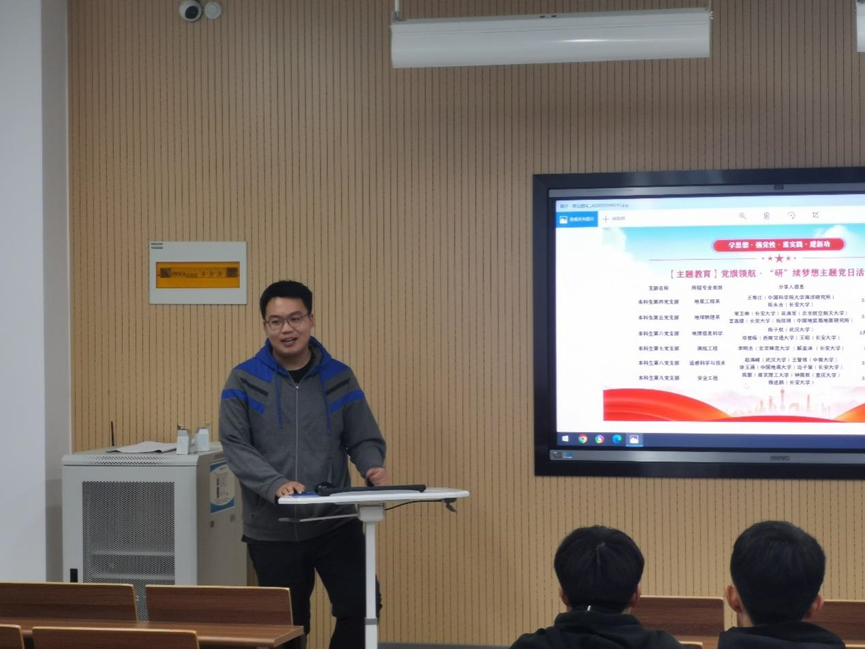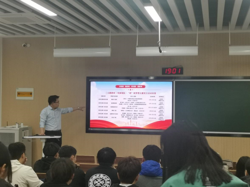 本科生第七党支部“党旗领航·‘研’续梦想”主题党日活动在修远2206教室举行。此次活动邀请了党支部书记苗行生老师为我们解读保研政策,同时也邀请了李明杰同学、解孟泽同学和王润涵同学来为我们分享他们保研和考研的相关知识和宝贵经验。