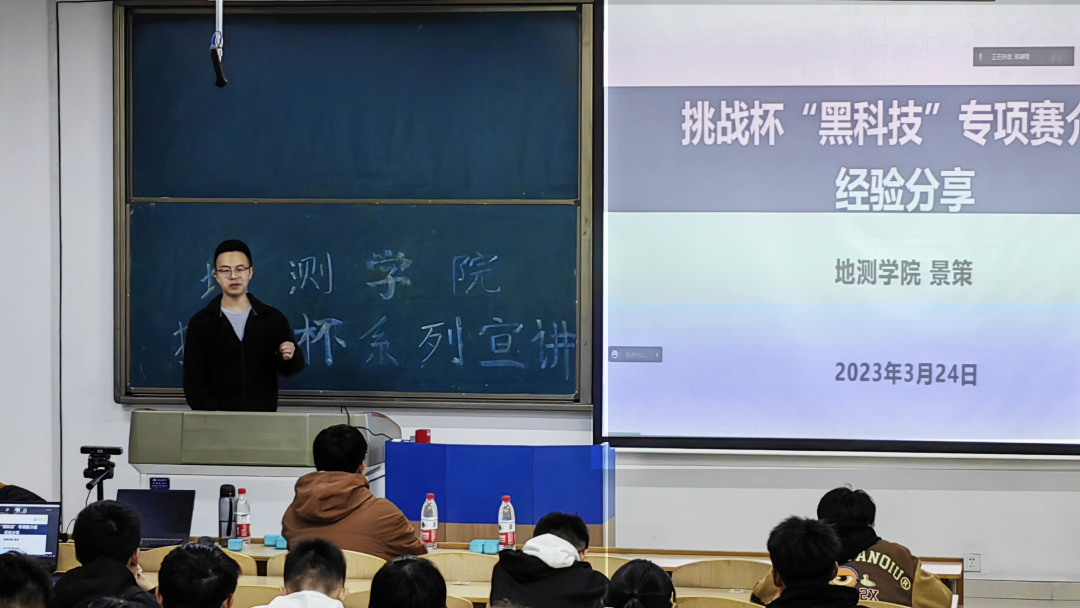 为了让同学们更好地了解挑战杯系列赛事的竞赛流程,做好赛前准备,同时调动同学们参加科创比赛的积极性,地测科协于2023年3月24日19:00在WH1203教室开展了91麻豆