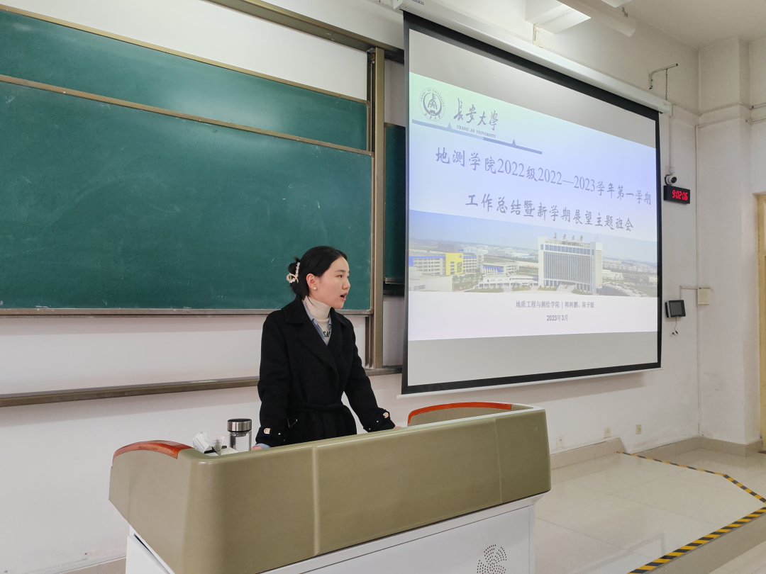 2022260404、2022260405班于鸿远2303教室开展了2022-2023学年第一学期工作总结暨新学期展望主题班会,此次班会由2022级辅导员韩树鹏、陈子毅主持,班级58名本科生共同参与。