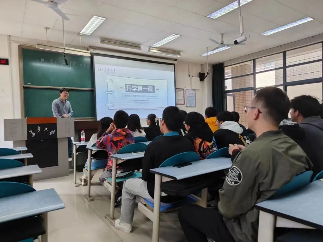 随后杨海城老师提醒各位同学大二已经到了第二个学期,要求同学们端正自己的学习态度,认真对待考试。面对愈发激烈的社会竞争,同学们需要对自己的未来作出合理的规划,理性的选择就业或者考研。杨海城老师指出,现在中国经济正处于转型期,将加快推进产业数字化创新,需要更精湛技术人员,鼓励同学们努力学习专业文化知识。