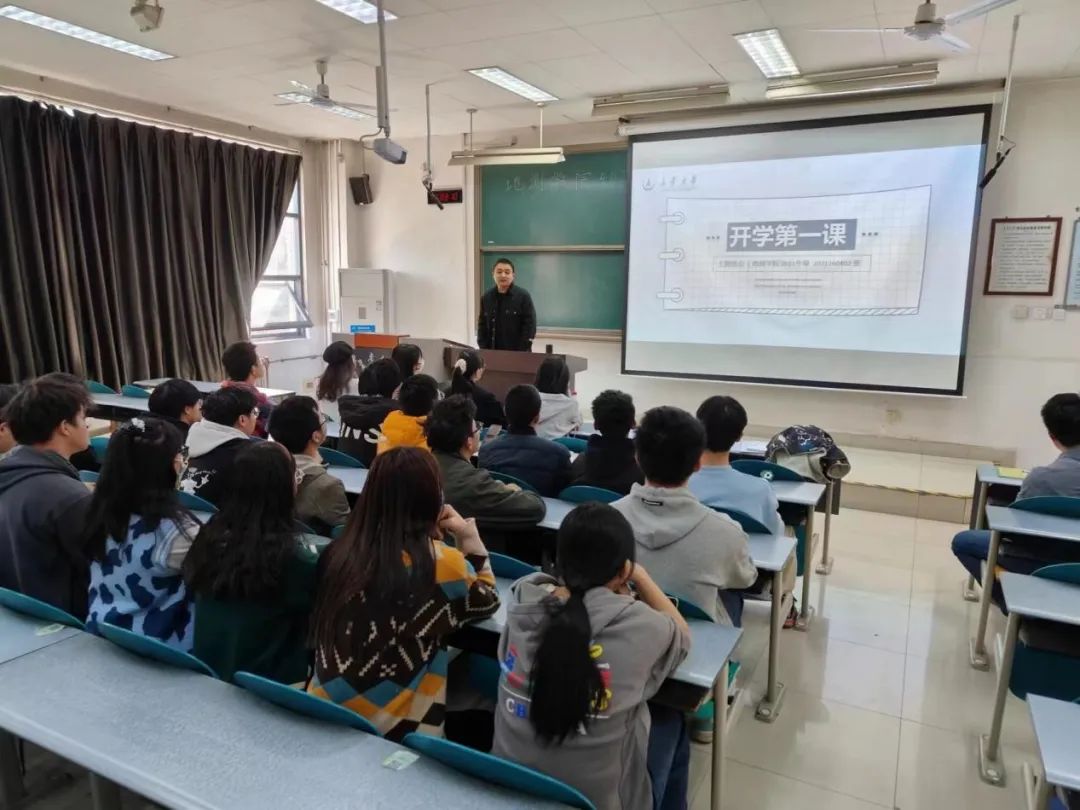 2021260402班班主任王晨、2021级辅导员杨海城及402班全体同学在渭水校区参加了“开学第一课”主题班会。本次班会由杨海城老师主持。