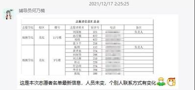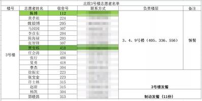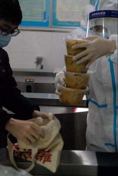 17日清晨起,管控升级后的每一餐,由南校区北院的支部党员同其他志愿者准时送达到在宿舍制动同学的手中;除了一日三餐外,日常所需的物资经过他们的组织安排也及时送到同学们手中;根据要求,按时组织同学们进行核酸检测,确保不落下每一个人,一张张紧凑的表格保证了3栋公寓楼日常生活的井然有序,这背后是他们每天奔波在公寓楼下的忙碌而坚定的身影,是一声声带着疲惫的嗓音,“同学,你的饭到了”。