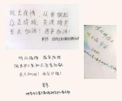 由于防疫要求,南校区东院、西院的同学需要寝室制动,部分支部党员无法加入志愿者队伍,为大家服务。但他们并没有因此懈怠,而是通过线上开展“加油长大,共克时艰“的主题活动的方式,为一线的支部党员送去鼓励与支持,用特殊的方式积极为疫情防控贡献自己的青春力量。大家用手中笔为参与志愿者活动的党员送去自己的祝福,字里行间是对他们最大的敬意,是对他们的肯定,更是与他们齐心协力的信念,为所有奋战在一线的志愿者、医疗工作者以及社区工作者等抗疫者“大声的加油”。