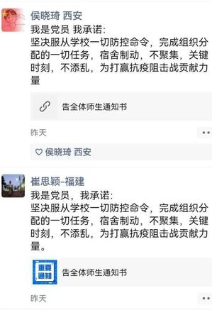 各班级在严格遵循辅导员安排的前提下,用自己的实际行动为抗疫贡献出一份力,以做寄语、做视频、志愿服务等方式发光发热,许多志愿者也表明只要有需要他们就会上场帮忙,这种种行动温暖了整个冬天。
