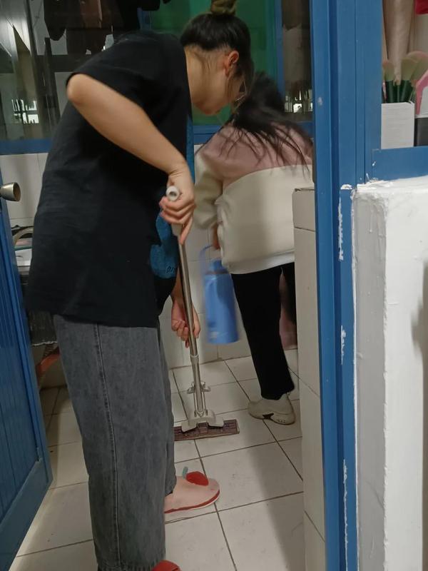 在宿舍内务指导的过程中,学长学姐们着重为同学们讲解了在宿舍卫生安全中需要注意的问题,比如:合理使用挂钩、置物架等小物品可以极大提高空间利用率;牙具的摆放要远离洗手盆,避免洗手时污水溅入;宿舍用电器在无人时要断电,特别是饮水机在水桶清空时要及时关闭,避免“干烧”。同时,也叮嘱同学们要深入落实学院疫情防控工作常态化要求,按时开窗通风、倒垃圾,保持宿舍的整洁和卫生,养成良好的生活习惯。2021级同学们则在学长学姐们的指导下对自己的宿舍进行了即时的内务整理。