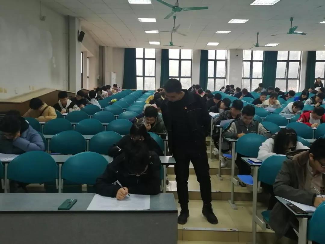 本次学生手册考试由本科生第六党支部提供题目,2021级辅导员杨海城老师作为此次的巡场人员,第六党支部和学院各团学组织同学为此次的监考人员。
