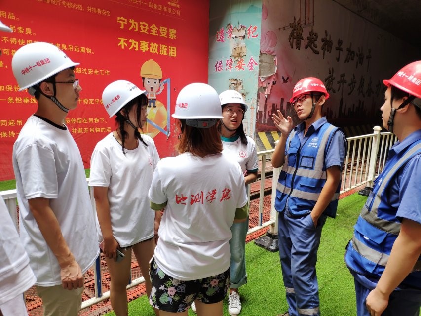 为了能直观感受基础设施的发展,了解洛阳地铁的修建过程、提前熟悉地质类专业工作环境,实践队分别于2019年7月9日和7月10日对洛阳地铁1号线丽景门站至青年宫区地下施工处和洛阳市轨道交通2号线1标1工区地下施工处进行了地下参观。