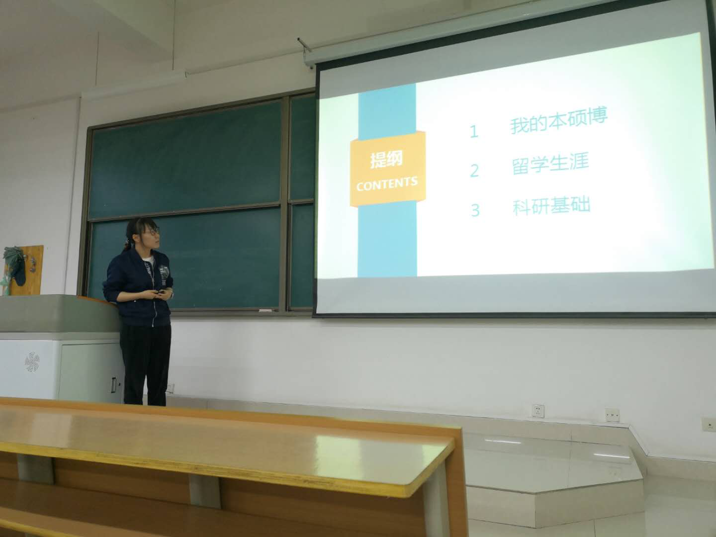的本科、硕士、博士及在加拿大纽芬兰纪念大学的学习生活经历和科学研究历程,鼓励学生们树立正确的人生观和价值观、勇于奋进、积极进取,学习上要时刻总结自己的成绩,正视不足,奋起努力。