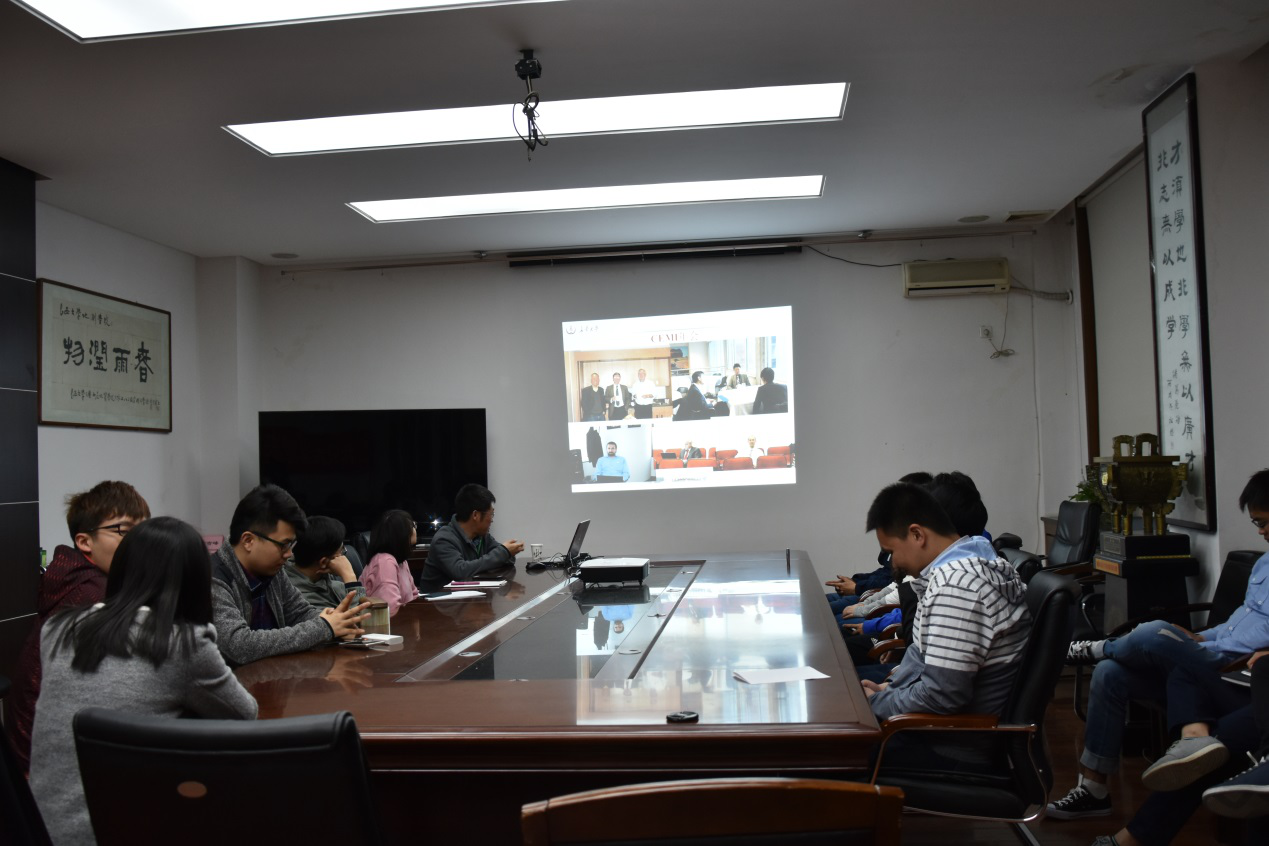 在这次交流会议中,张继锋老师首先对自己的研究方向,以及他在美国的学术课题小组人员进行了介绍。并就参加的学术会议进行了展示和说明。在交流的过程中,张继锋老师再三强调,我们要打开视野,和国际接轨,关注自己研究的方向在国际上的发展现状以及目前的研究热点问题。除了学术交流之外,张继锋老师也介绍了他在美国的生活经历。同学们积极地和张继锋老师探讨交流了自己关注的问题。从中收获了很多有用信息。最后张继锋老师鼓励我们要抓住机会,努力深造自己,要认识到差距,不气馁的提高自己。