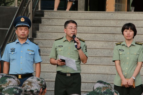 最后,滑思忠副书记作为2016级军训师八团政委与军训师教官们一起登台,向学生们介绍了我院所属第八团的团长、政委、连排长及指导员。之后,他向新生们提出军训以及开学典礼纪律要求。滑书记强调,军训是大学生活的开始,也是学生步入大学的第一课,同学们应在军训期间尽快适应大学生活,并在以后的学习生活中严格遵循学校及学院的相关纪律。