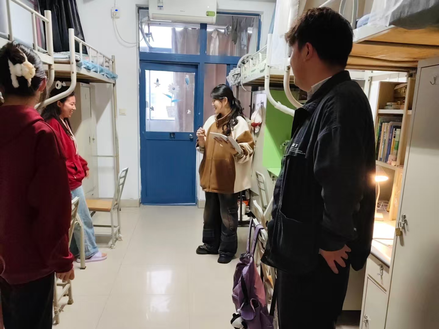 党委副书记潘迎、学办主任段少帅、团委书记杨东民以及全体辅导员开展了学生宿舍走访慰问活动。