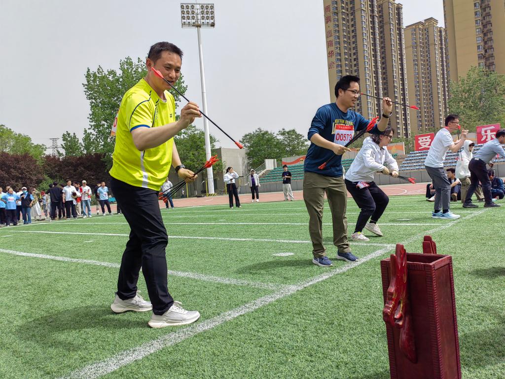 党政领导也来到比赛场地并参与了投壶跑等趣味比赛,运动员们奋力拼搏,勇争上游,展现自身风采。