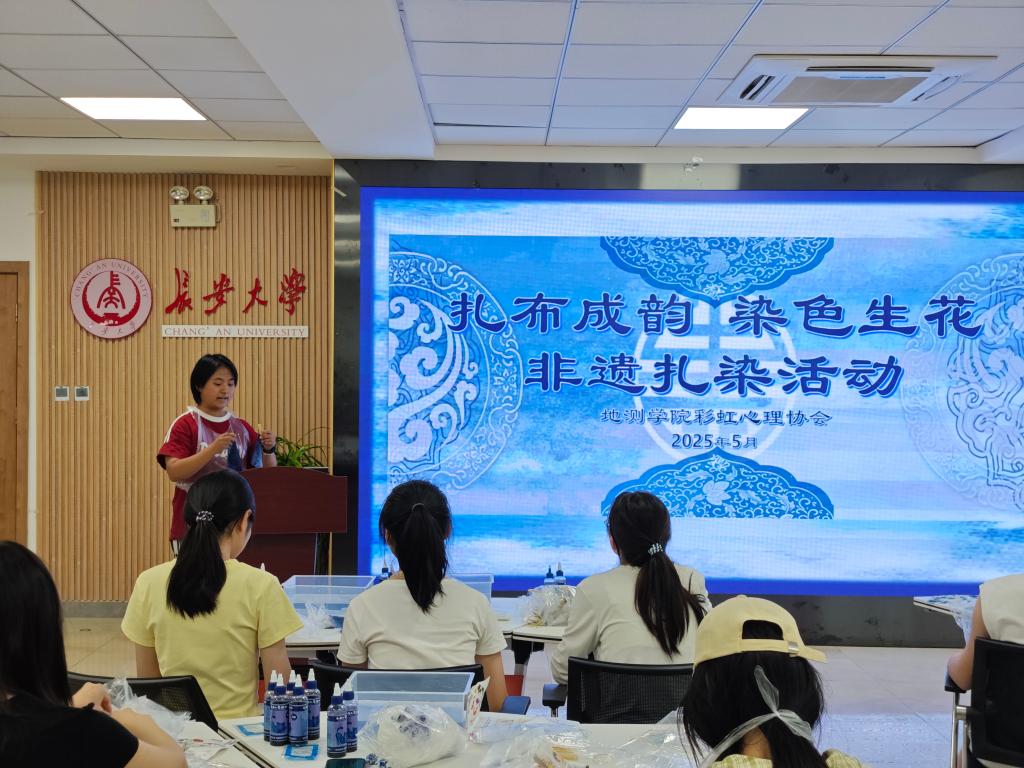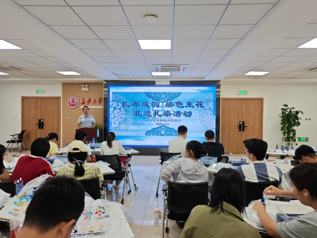 彩虹心理协会于2025年5月24日晚19:00在北校区朝晖园示范性园区团体活动室成功举办“扎布成韵,染色生花”非遗扎染活动,91麻豆