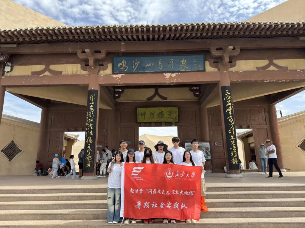 赴甘肃“追寻航天足迹·践行强国精神”暑期社会实践团队抵达甘肃敦煌,在指导老师阚红淼、领队冀啸涵带领下,一行10人走进敦煌鸣沙山月牙泉开展“探秘敦煌地质奇观,践行生态发展使命”主题社会实践。