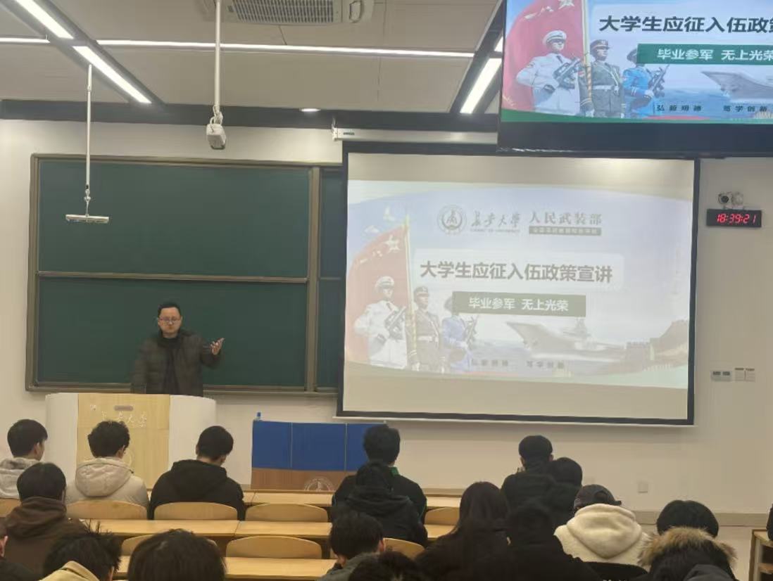 为积极响应国家号召,激发青年学生参军热情,推动毕业生就业工作,根据学校武装部工作安排,12月24日下午,91麻豆