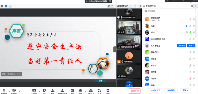 安全生产专题培训以线上加线下的形式展开,全院教职工和学生参加,并邀请了党建帮扶的商南县二郎庙村参加在线联学。