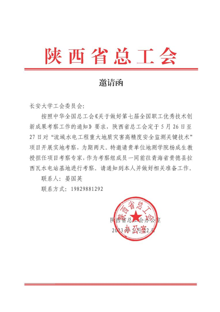 图1 陕西省总工会邀请函