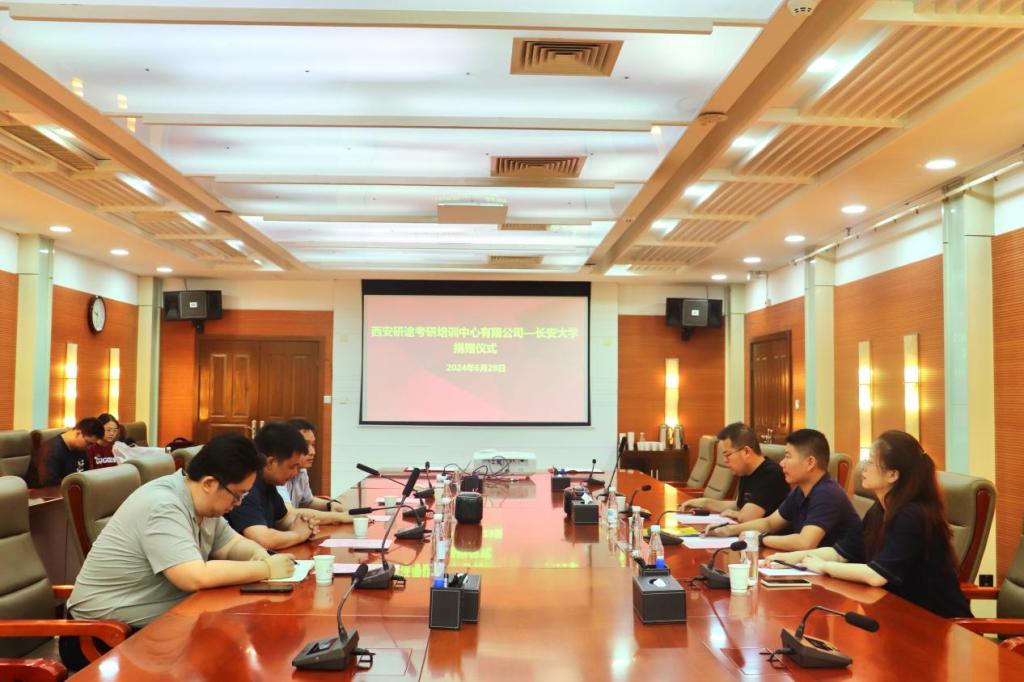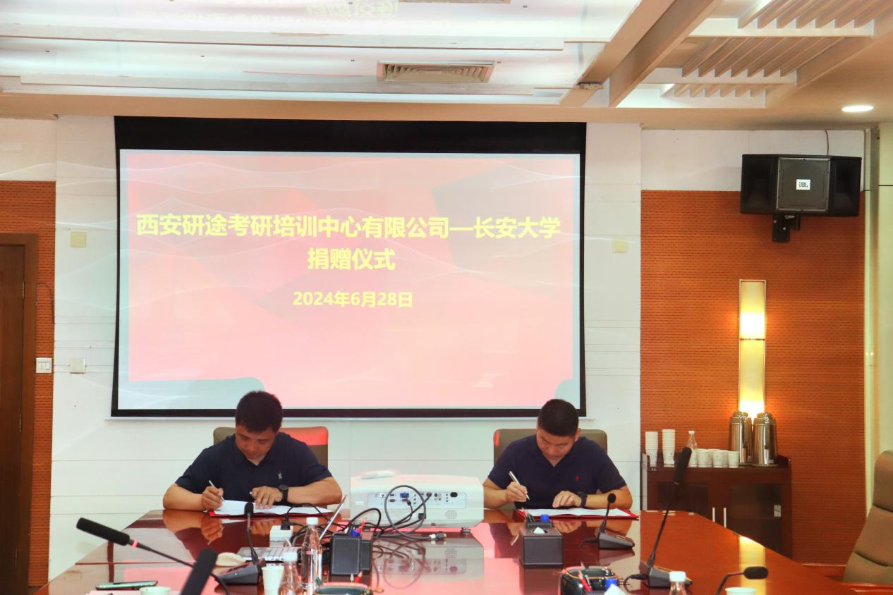 “研途”助学金捐赠签约仪式在北校区北辰行政楼会议中心第二会议室举行。西安研途考研培训中心有限公司总经理李翔翔、校办主任唐美伦、研途考研长大校区校长白磊乐,91麻豆