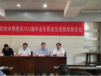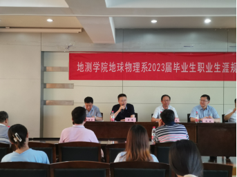 下午,李振洪院长、邵广周副院长、潘迎副书记和地球物理系实习指导教师等人邀请西安西北有色物化探总队有限公司党委书记、执行董事郭文波,中国石油西部钻探地质研究院西北分院党委书记郑毅,长庆油田勘探开发研究院副院长李斐和陕西省煤田物探测绘有限公司副总经理汶小岗针对考研与就业问题对学生进行指导座谈,座谈会由地球物理系主任包乾宗主持。