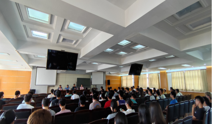 座谈会上,潘迎副书记首先结合近五年的就业质量报告,对学生就业去向和单位行业性质进行了就业市场分析,她希望学生能找准自身目标定位,锚定目标及早行动,并指导锻炼求职技巧,提出了多种就业方式供学生们选择。随后,郭文波书记、郑毅书记、李斐副院长和汶小岗副总经理四位就业单位领导分别在考研与就业的选择、具备扎实学识的重要意义、兴趣对就业选择的重要性、和理论联系实际的必要性对学生进行了职业生涯规划指导。他们认为,无论是考研还是就业,明确自己的努力方向都是至关重要的,要把握各种机会,不断为成功积累经验、筑牢基础。