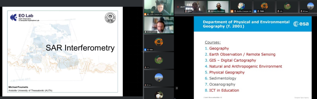 联合邀请,亚里士多德大学教授将为我校学生开设对地观测与地理信息处理系列课程,为期6周,合计6讲。6月18日下午,第一讲课程正式在线上开讲,主题为“InSAR原理与技术”,主讲人为亚里士多德大学Michael教授与Foumelis教授,主持人为测绘科学系朱武教授。