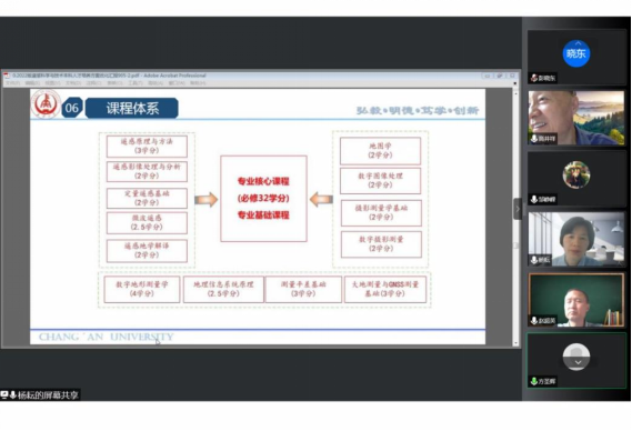 之后的评审会由专家组组高井祥教授主持。首先由我测绘科学系副主任、遥感专业副教授杨耘老师汇报2022版遥感专业培养方案的修订情况和一些疑问,汇报内容包括此次修订的原因、目的、原则、调整的内容和具体的培养目标、毕业要求和课程体系。之后、各位专家围绕培养方案进行讨论,并提出了宝贵的意见和建议,特别在遥感物理、遥感传感器、人工智能、交通运输等杺心课程设置与培养方案和专业特色的支撑问题上进行了深入的交流,最终形成评审意见。专家一致认为本次培养方案培养目标和毕业要求明确,特色鲜明,课程设置和教学进程总体安排合理,符合国家工程专业认证的相关要求,建议执行。