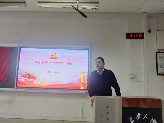 最后,学院党委书记戴宏作题为《中国共产党的性质和宗旨》专题党课,从历史经验、中国共产党第一次全国代表大会、中国共产党成立的伟大意义、党的二十大报告等内容,详细解读了中国共产党的成立、性质、宗旨,使同学们进一步认识到了“两个先锋队”、“三个代表”的关系。