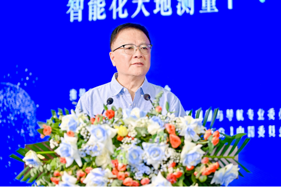 中国测绘学会副理事长兼秘书长、中国测绘科学研究院党委书记张绍杰致辞,他向全国大地测量与导航工作者们对中国测绘学会和大地测量与导航专业委员会工作的支持表示感谢,强调了大地测量在国家重大基础设施建设和维护中的重要作用。