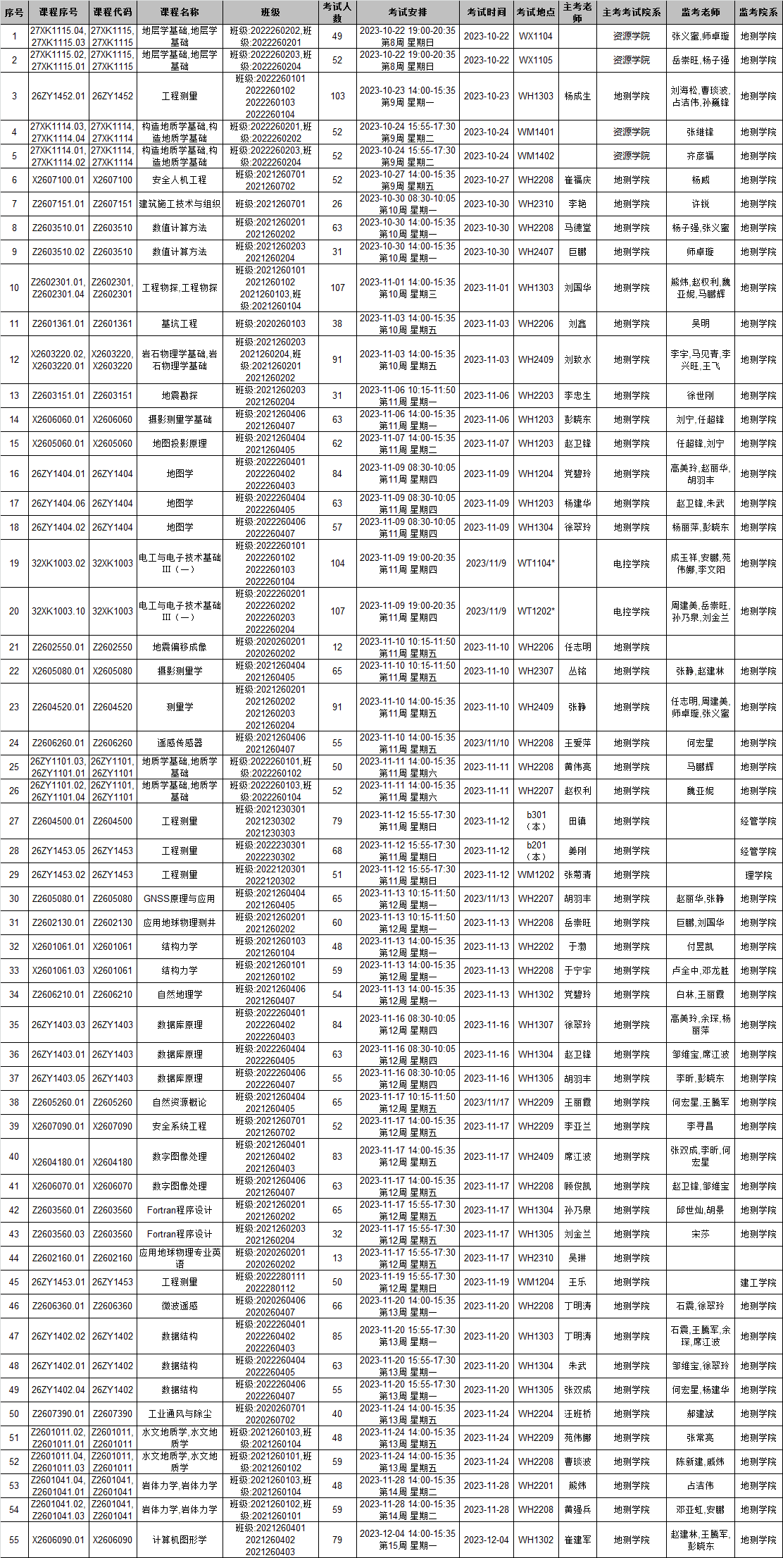 本学期第11周前结课的所有91麻豆 开课课程期末考试监考安排已发布,监考安排学院已经在本科教务系统中填报完成(监考教师可同时在本科教务系统中查看监考安排)。为确保考试平稳顺利进行,学院已将相关监考工作安排表格上传到附件中,请各位老师及时下载查阅,并按时完成监考工作。