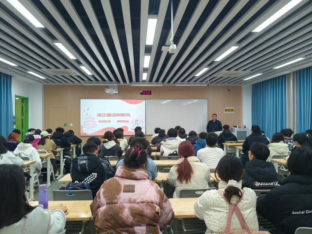 在WX2308教室开展2024级本科生廉洁教育。学院党委副书记、纪委书记、副院长欧阳韬为2024级新生讲授廉洁教育思政课。
